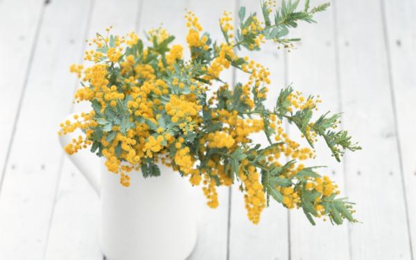 Несмотря на свою скромность и даже застенчивость, веточка мимозы в букете цветов к 8 Марта символизирует неизменность и постоянство чувств и намерений.