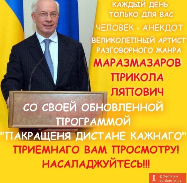 Слайди містять інформацію та статистичні дані про «покращення» уряду Азарова, зокрема про зубожіння та вимирання населення України; про ріст заборгованості з виплати зарплати; про зростання дефіциту Пенсійного фонду та держбюджету; про нестабільність національної валюти; падіння промислового виробництва тощо.