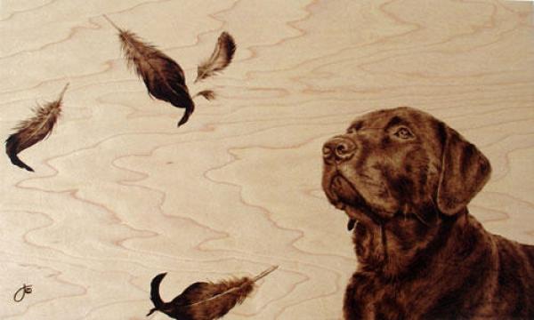 К сожалению, ни одной работы у меня не осталось... Хотя я с уверенностью могу сказать, что мой труд даже не входит в сравнение с работами Джули Бендер. А все потому, что ее рисунки, выжженые на дереве, больше похожи на реалистичные картины на холсте или даже состаренные фотографии.