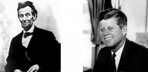 2. Линкольн был избран осенью 1860 и стал президентом в 1861 году, Кеннеди избран в 1960 году и стал президентом в 1961г.. Опять 100 лет спустя.