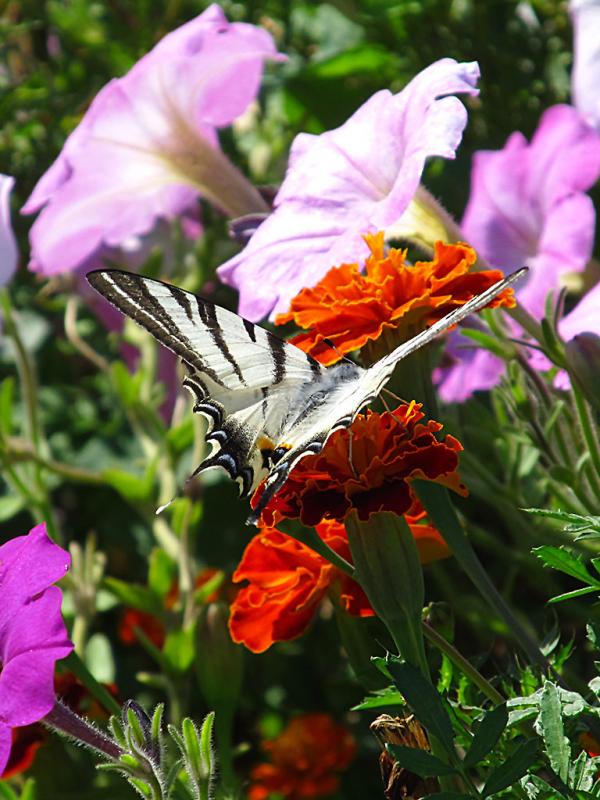 Як підтвердження хочеться поділится з вами фото гарного метелика справжнє ім'я якого papilio machaon. Ці фото зроблені на площі в нашій Баштанці. Таких метеліків не часто зустрінеш у нас, але все-таки їх можна побачити на квітках, коли вони пьють нектар. Це денний метелик з сімейства вітрильників або кавалерів.
