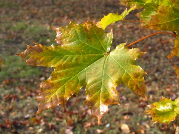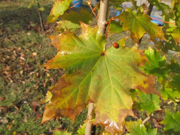 сонечко на осінньому кленовому листі вражає, а ще троянда в росі