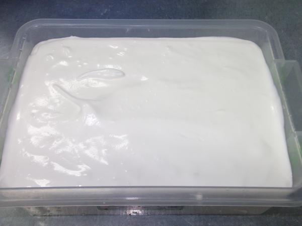 Теперь надо аккуратно перемешать белки со сливками, и поместить массу в пластиковый контейнер, который плотно закрывается крышкой, и отправить его в морозильную камеру.