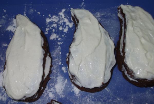 Чтобы наши заготовки не прилипали, надо разнос посыпать сахарной пудрой, или какао. Теперь делаем вот такие полуёжики:)
