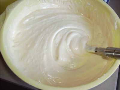300 грамм сахара и миксером взбиваем до густой массы, и растворения сахара. На это уходит минут десять. Затем добавляем