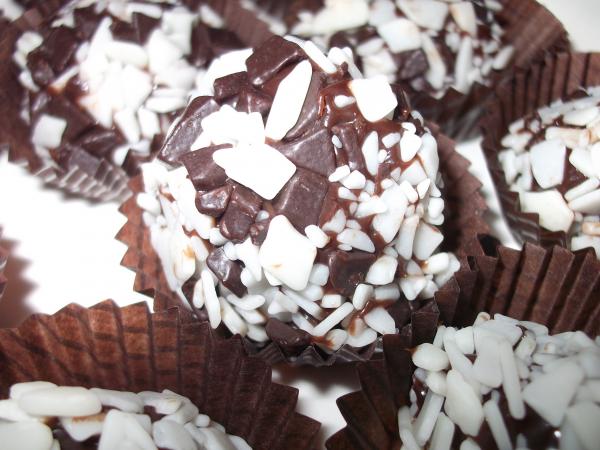 Ну а если нет шоколадной крошки, то можно просто обвалять конфетки в какао, от этого хуже не будет, может даже кому-то понравится так ещё больше!