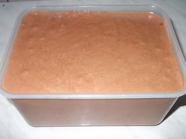 Потом мусс перекладываем в пластиковый контейнер с крышкой, и отправляем в морозильную камеру.
