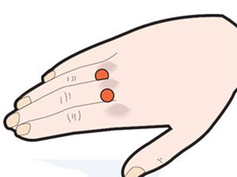 Две точки, которые массируем при икоте, находятся на кисти руки - по бокам костяшки среднего пальца, в том месте, где фаланга пальца стыкуется с суставом. Нажимать следует одновременно с двух сторон до появления легких болевых ощущений.
