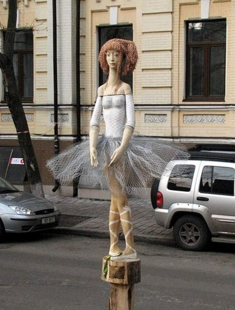 Из дерева. Из засохшего дерева. Где-то пилят деревья, которые уже никогда не смогут радовать своей листвой и своей тенью в жаркое лето. А вот талантливый скульптор в Киеве делает необычную красоту, чем очень радует жителей и гостей столицы.