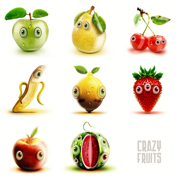 Вот такие моргающие фрукты придумывает украинский дизайнер Александр Западенко.