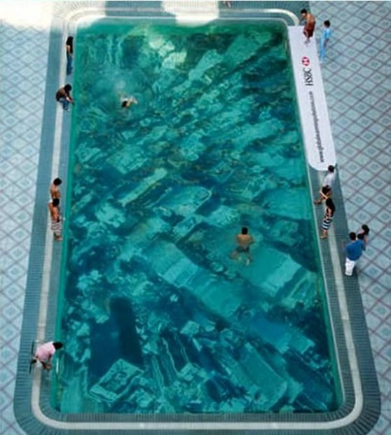 Тогда вот. Вам нужно побывать в одном из бассейнов Индии, в городе Мумбаи. Там креативные люди на дно всего бессейного сооружения поместили наклейку.