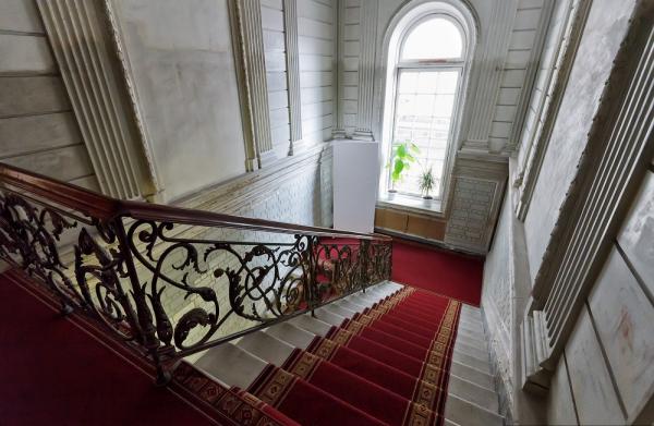 Монументальная лестница с бронзовыми перилами выполнена в стиле Ампир