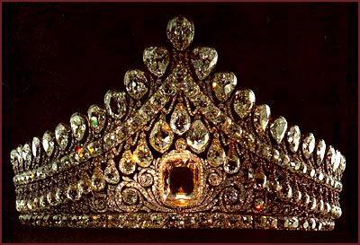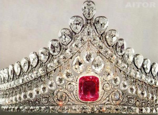 диадема с розовым бриллиантом императрицы Елизаветы Алексеевны, которую одевали все княжны и императрицы во время венчания