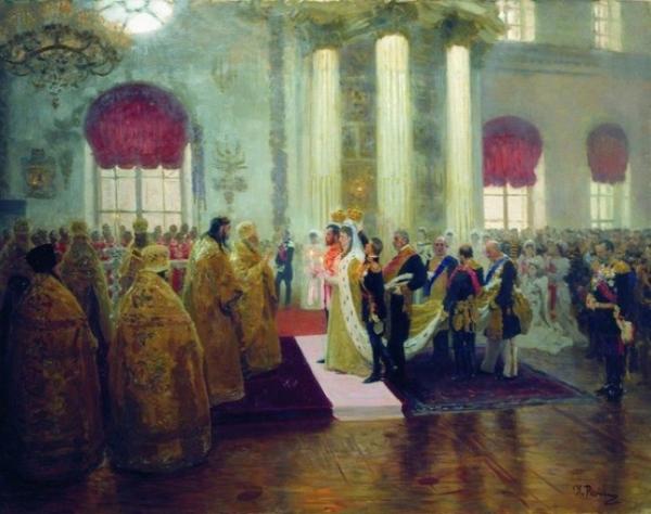 венчание Николая II и Александры Федоровны, состоявшееся 14 ноября 1894 г. (фрагмент картины Туксена)