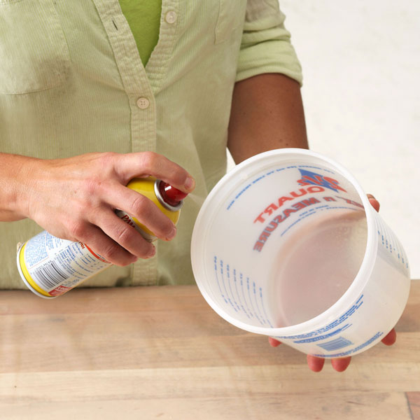 Далее - показано, что нужно обработать поверхность, куда будет закладываться масса, спреем. Кулинарный спрей, в котором масло.Делается это, по всей вероятности, для того, чтобы легче было вынуть формы из цементной массы.