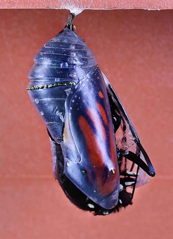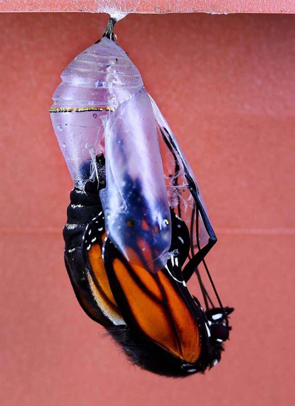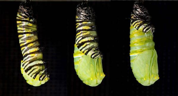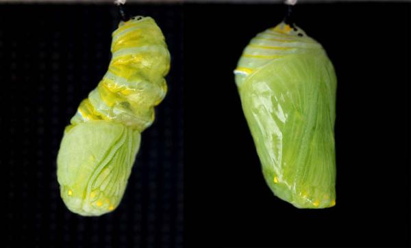 В этот момент происходит та самая уникальная метаморфоза, сопровождающаяся гормональными изменениями, которые приведут к появлению бабочки.