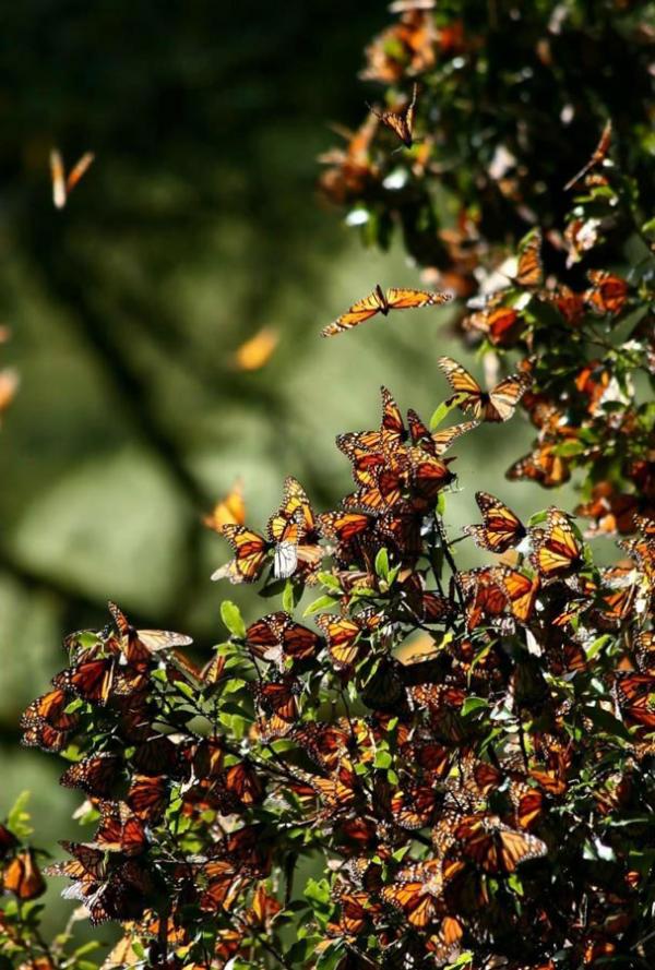 Когда бабочки прибывают в пункт своего назначения, немногие счастливчики из числа людей могут увидеть бесчисленное множество монархов, свисающих с каждой ветки.