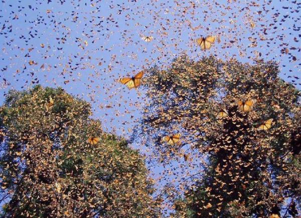 Бабочки с территорий восточнее Скалистых гор направляются в Мексику, а обитатели запада – в Калифорнию, особенно в хвойные леса около Санта-Крус и Пасифик-Гроув. Именно здесь и наблюдается невероятное зрелище.