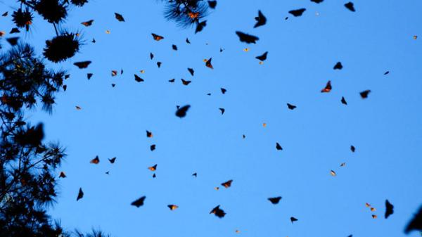 Авторам ролика удалось заснять удивительный момент, они запечатлели на камеру миграцию бабочек Данаида монарх.