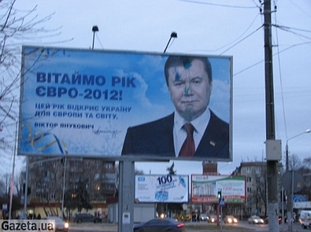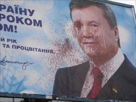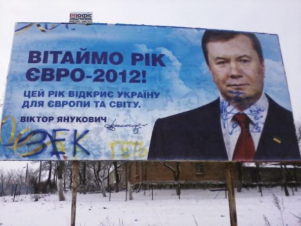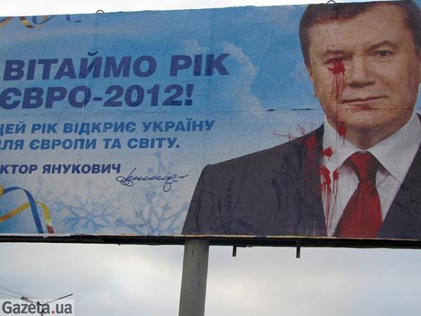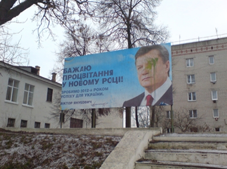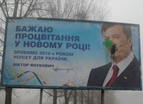 І які б заходи не вигадувала влада для охорони тих усміхнених білбордів, а їх продовжують розкрашувати фарбою та яйцями: в Одесі, на Волині, у Рівненській, Запорізькій, Полтавській та інших областях.