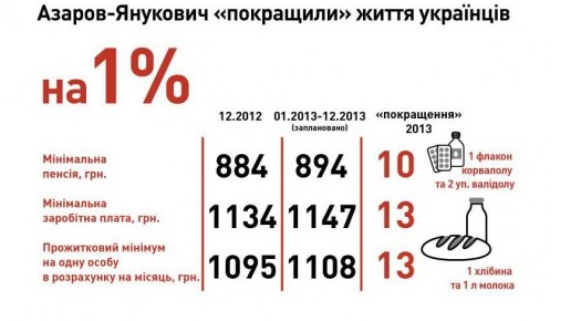 Слайди містять інформацію та статистичні дані про «покращення» уряду Азарова, зокрема про зубожіння та вимирання населення України; про ріст заборгованості з виплати зарплати; про зростання дефіциту Пенсійного фонду та держбюджету; про нестабільність національної валюти; падіння промислового виробництва тощо.