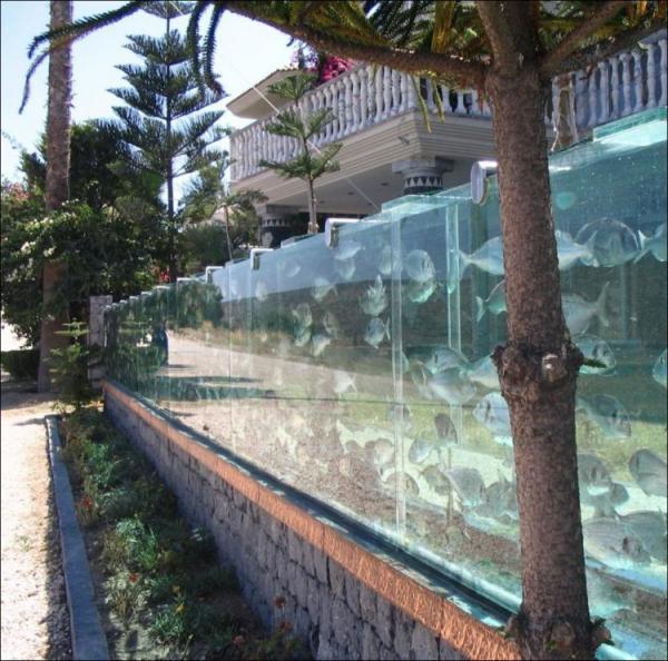 Интересное архитектурное решение :) Житель Турции построил возле своего дома забор-аквариум. Длина аквариума 50 метров. В нем плавает около тысячи рыб.