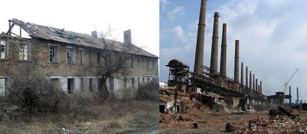 Хотите других примеров «экономических чудес?» Их хватит на целую книгу. Можно вспомнить еще войну рыбаков с губернатором донецкой области и одним из отпрысков Януковича за право рыбачить на водохранилище под Константиновкой, которое власти области оценили в 500 грн с удочки. Столь хамский наезд вынудил людей собраться вместе и грозить властям акциями неповиновения. Другой пример авангардных донбасских свершений - экономическая катастрофа города Лисичанска, где этим летом остановилось практически все производство. Один из флагманов лисичанской индустрии - завод «Лиссода» был и вовсе полностью уничтожен и снесен под ноль российскими хозяевами из-за конфликта с «хозяином» города - нардепом от ПР Сергеем Дунаевым. Вот так он выглядит сейчас.