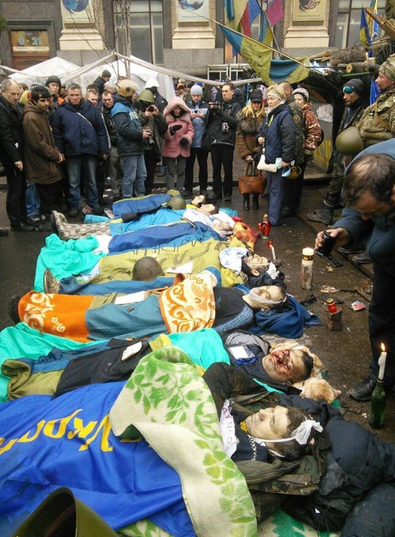 Небывалая жестокость, с которой расстреливали людей на Майдане правоохранители, шокировала всех. Люди, из оружия у которых имелись только палки и бутылки, были холоднокровно расстреляны с крыш в тот момент, когда они просто стояли на баррикадах и не нападали на правительственные силы. Были убиты студенты, преподаватели вузов, предприниматели, пожилые женщины. Тяжело ранена девушка-санитарка с большим красным крестом на белой футболке.