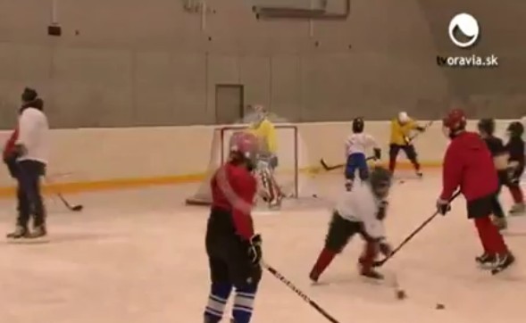 В этот момент на льду проходила тренировка детской хоккейной команды. Вел тренировку известный хоккеист, бывший игрок НХЛ, словак Рихард Зедник.