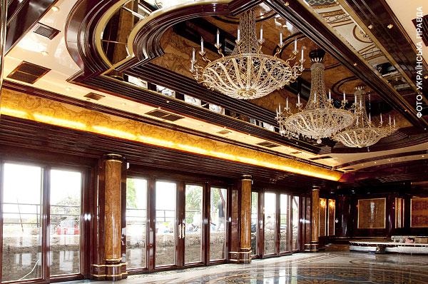 Как выглядит Межигорье. Смотрим фотографии интерьера одного из помещений резиденции главы государства Виктора Януковича - дебаркадер Галеон, предназначенный для отдыха президента Украины на воде в летнее время.