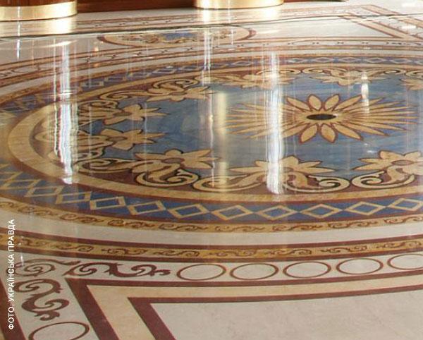 Основное - это банкетный зал с эстрадой. На стенах и потолке - ценные породы древесины, на полу - мрамор, вокруг - позолота и хрусталь.