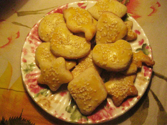 Пряники и печенье – это ритуальные блюда Рождества. Ими угощают колядующую детвору, украшают елку, кладут в подарок и поминают предков. Растопите 110 г масла. Взбейте соду, тертую корку лимона, 2 ст. л. сгущенного молока, желток, 2 ч. л. коньяка и 50 г сахара. Добавьте в растопленное масло 3 ст. л. растительного масла, хорошо смешайте. Добавьте 260 г муки, 100 г манки, 1 ч. л. пекарского порошка, 1/4 ч. л. молотой гвоздики, щепотку мускатного ореха, 1/2 ч. л. корицы, замесите тесто. Ложечкой берите тесто и кладите на бумагу в виде овального печенья. Выпекайте 15 мин. при 180 °С. Смешайте мед с водой и проварите минуту. Обмакните печенье в сироп и посыпьте обжаренным кунжутом.