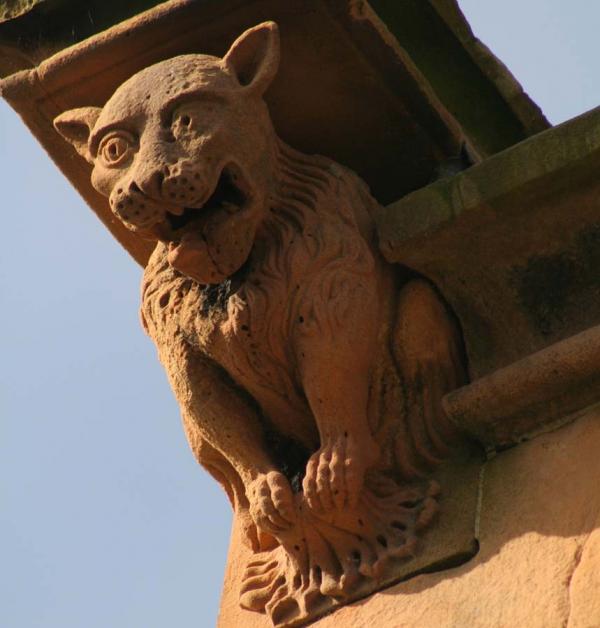 Однако в средние века строители соборов использовали льва, как символ гордости, что, конечно, было одним из семи смертных грехов, а потому его стоило избегать. Вот этот лев, например, выглядит довольно гордым. Он находится на одном из колледжей во Франции. Помимо львов при создании гаргулий практически не использовались другие виды кошачьих. Кошки были символом колдовства, поэтому их избегали.
