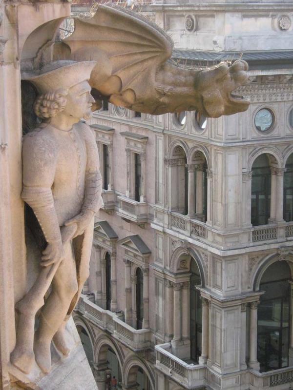На Миланском соборе есть довольно интересный набор химер – там ренессансные мыслители стоят рядом с этими странными существами из воображения сумасшедших. Эти химеры на крышах соборов и других зданий олицетворяли тех, кто недооценивает могущество дьявола. Хотя дьявол не может создать жизнь, он может смешать разные формы жизни, чтобы получить новую – то бишь, химеру.