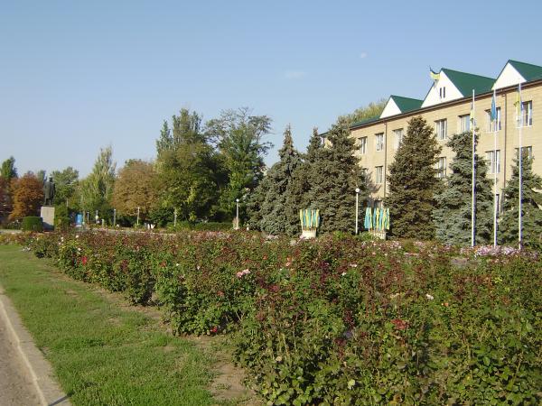 А сегодня для сравнения сфотографировала площадь Ленина в Баштанке, с нашим памятником Ленина, нашей райгосадминистрацией, нашими клумбами и фонтанчиком.