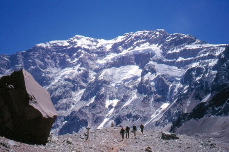 Аконкагуа, самая высокая вершина Анд и Западного полушария (6960 м), находится в Аргентине на границе с Чили. На вершине, разумеется, вечные снега и 7 ледников.
