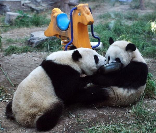 В Пекине для них оборудовали довольно таки милый вольер, чтобы зверушки чувствовали себя свободно и непринуждено. Наблюдать за ними - одно удовольствие.