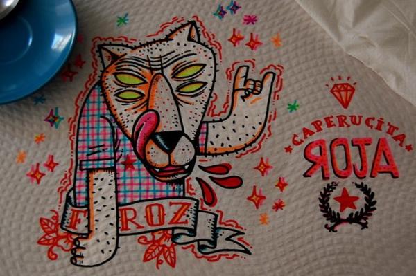 Он дошел до того, что создал собственный блог, посвященный своим иллюстрациям, нарисованным на салфетках и скатертях ресторанов.