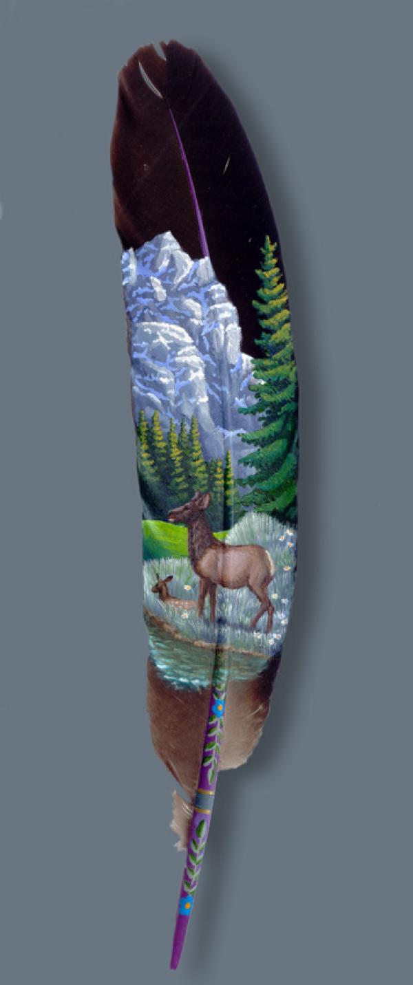 Джули Томсон - художница из Аляски, которая рисует на перьях птиц исключительно дикую природу. Хотели бы попробовать нарисовать что-то подобное? Тогда черпайте идеи: