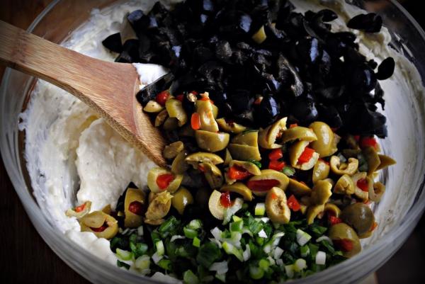 Если вы любите экспериментировать в кулинарном плане, тогда можете попробовать приготовить вот такой простой салат с оливками и сыром: очень просто и вкусно. Если хотите, чтобы он получился менее калорийным - попробуйте заменить майонез на сметану.