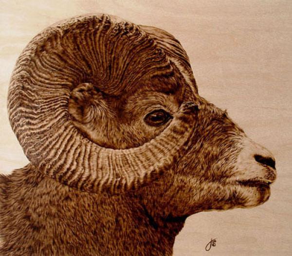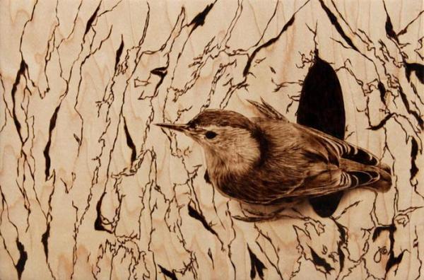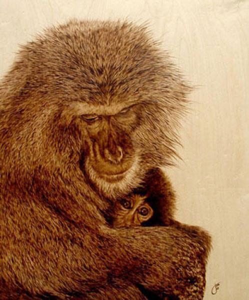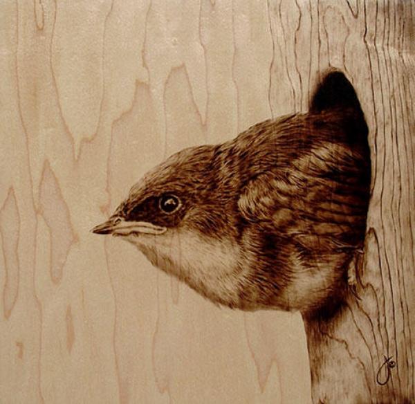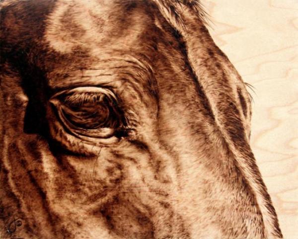 К сожалению, ни одной работы у меня не осталось... Хотя я с уверенностью могу сказать, что мой труд даже не входит в сравнение с работами Джули Бендер. А все потому, что ее рисунки, выжженые на дереве, больше похожи на реалистичные картины на холсте или даже состаренные фотографии.