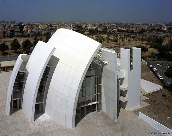 1. Создатель церкви Jubilee в Риме Ричард Мейер не постеснялся назвать ее "гордостью Рима" и "проектом тысячелетия". Три параллельно расположенные дуги левой стены символизируют собой Святую Троицу, а гладкая зеркальная поверхность перед храмом должна напоминать о воде, являющейся важной частью обряда крещения.