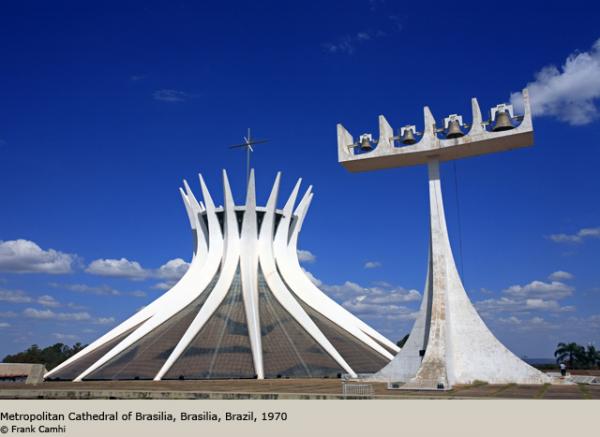 2. Кафедральный собор в столице Бразилии состоит из асимметричных гиперболических колонн, весящих 90 тонн каждая. Форма церкви символизирует руки, поднимающиеся к небесам, к Богу.