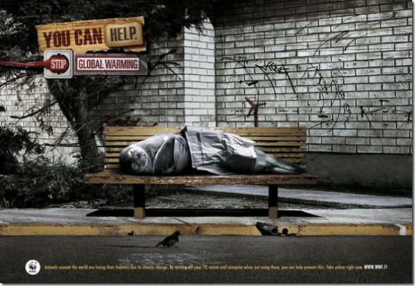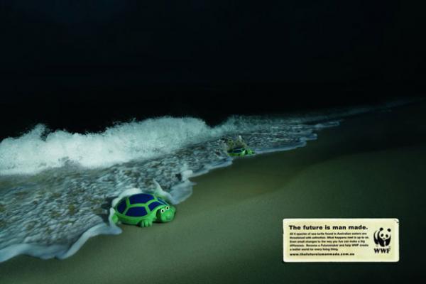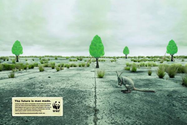 Для привлечения общественности к проблемам окружающей среды: защиты воздуха, земли и воды от загрязнения, а зверей и птиц - от вымирания, на заказ Всемирного фонда природы WWF, лучшие агентства мира, преимущественно на добровольных началах, делают потрясающую и креативную рекламу.